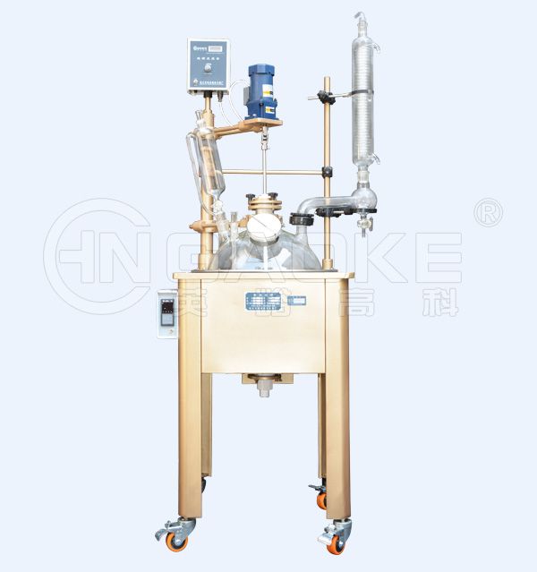 單層玻璃反應(yīng)器(又名單層玻璃反應(yīng)釜)是一種多功能反應(yīng)器,可以在恒溫條件下進(jìn)行各種生化合成反應(yīng),儀器為全封閉系統(tǒng),可根據(jù)需要將釜內(nèi)抽至致負(fù)壓狀態(tài),滿足實(shí)驗(yàn)條件。通過(guò)調(diào)節(jié)恒壓漏斗或加料瓶上的調(diào)節(jié)閥控制物料均勻滴加,亦可利用負(fù)壓連續(xù)吸入各種液體物料。也可以在不同溫度下作加注或蒸餾,利用冷凝器的熱交換功能可蒸餾回收反應(yīng)產(chǎn)物。設(shè)備自身具備加熱浴槽。