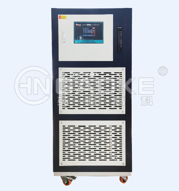 GDSZ高低溫循環(huán)裝置,整個(gè)系統(tǒng)的液體循環(huán)是密閉的,系統(tǒng)帶有膨脹容器,膨脹容器和液體循環(huán)是絕熱的,并不參與液體循環(huán),只是機(jī)械的連接,不管液體循環(huán)的溫度是高溫還是低溫膨脹容器中的介質(zhì)低于60℃。低溫時(shí)沒(méi)有水汽的吸收,高溫時(shí)沒(méi)有油霧的產(chǎn)生,導(dǎo)熱油工作溫度范圍廣。同一臺(tái)機(jī)器,同一種導(dǎo)熱介質(zhì)可以實(shí)現(xiàn)-80℃到200℃的控溫。